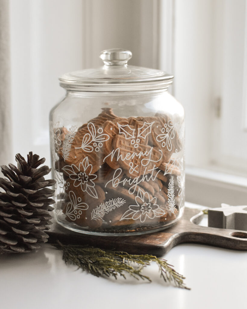 Van egy tároló üvegedényem, melyet igyekszem minden évszakban egy kicsit felfrissíteni. Ez az évek alatt egy nagyon kedves tradícióvá vált számomra. Szeretem kitalálni az adott évszakhoz kötődő illusztrációkat és mindig izgatottan várom, hogy hogyan fog mutatni az üveg felületén.